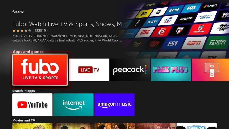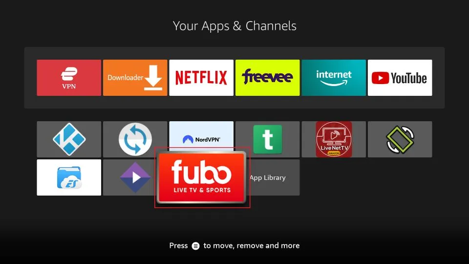 Fubo is available directly through the Amazon Store. Follow these steps to download and install the app on your FireStick: