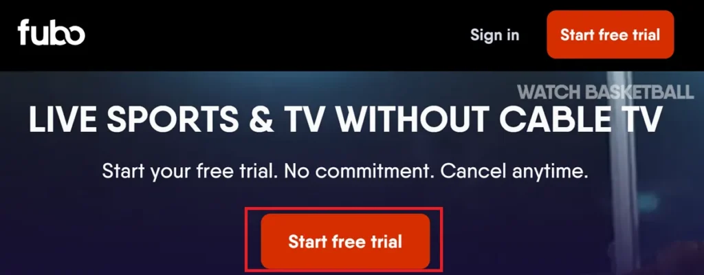 Visit the Website: Go to www.fubo.tv and click the START FREE TRIAL button.
