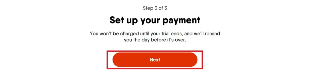 Payment Setup: Click Next to set up your payment.