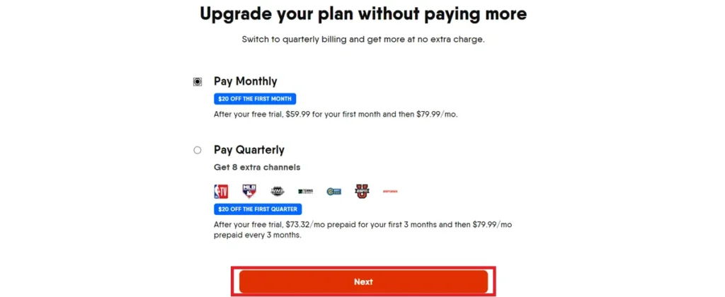 View Plans: Click Next to view the available Fubo plans.