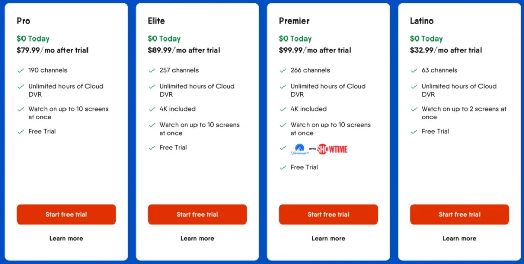 Choose a Plan: Select your preferred plan (Pro, Elite, Premier, or Latino) and click Start Free Trial.