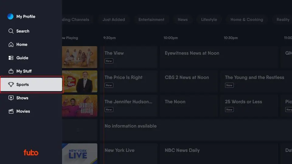 Fubo has dedicated sections